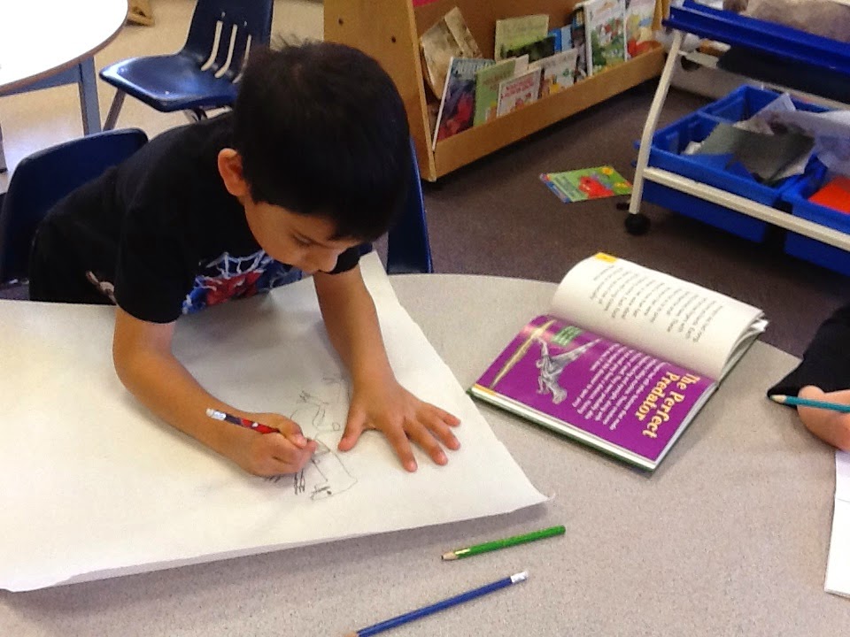 Here they are drawing their dinosaurs so that they have a variety of them.